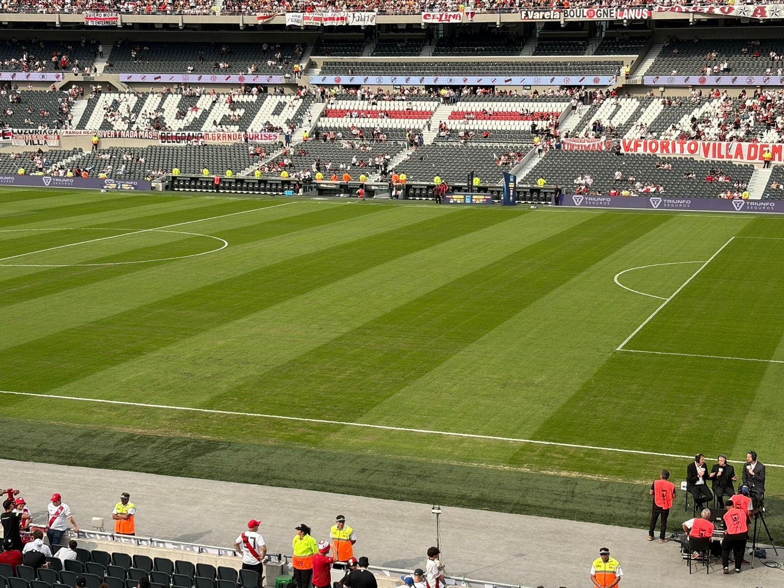 A minutos de un nuevo Superclásico los equipos tienen una gran preocupación: ¿cómo está el campo de juego, el cuál se vio en muy malestado el pasado miércoles ante Carabobo? Lo cierto es que con trabajos a contrarreloj, el césped del Más Monumental luce una notable mejoría.