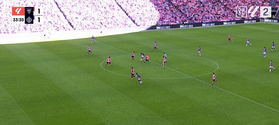 Jugada insólita en San Mamés, allí donde Athletic Club se floreó durante la primera mitad ante Valladolid.