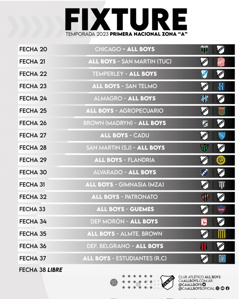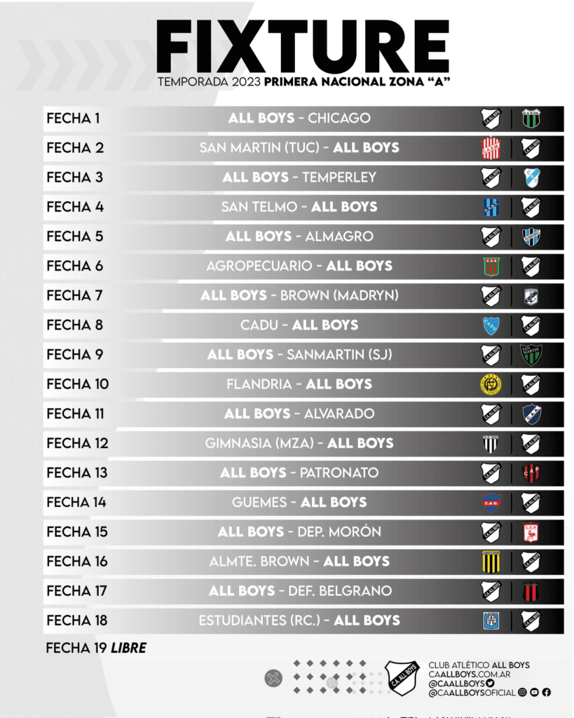 All Boys ya conoce qué caminó deberá recorrer en la Primera Nacional 2023. Tras el sorteo llevado a cabo en AFA, los de Floresta recibieron su fixture donde formarán parte de la Zona A, teniendo un estupendo comienzo con el Clásico ante Nueva Chicago.