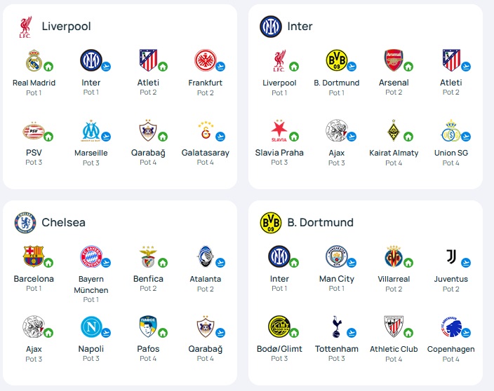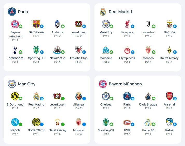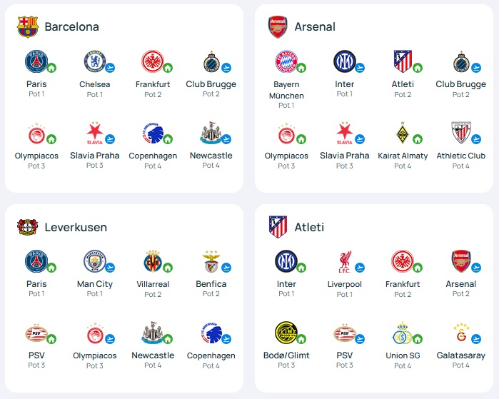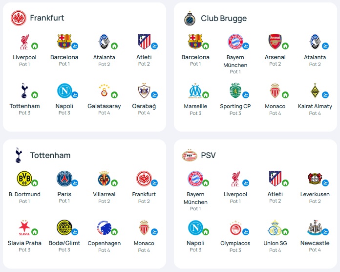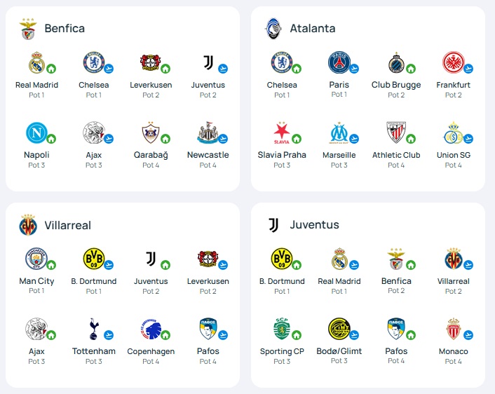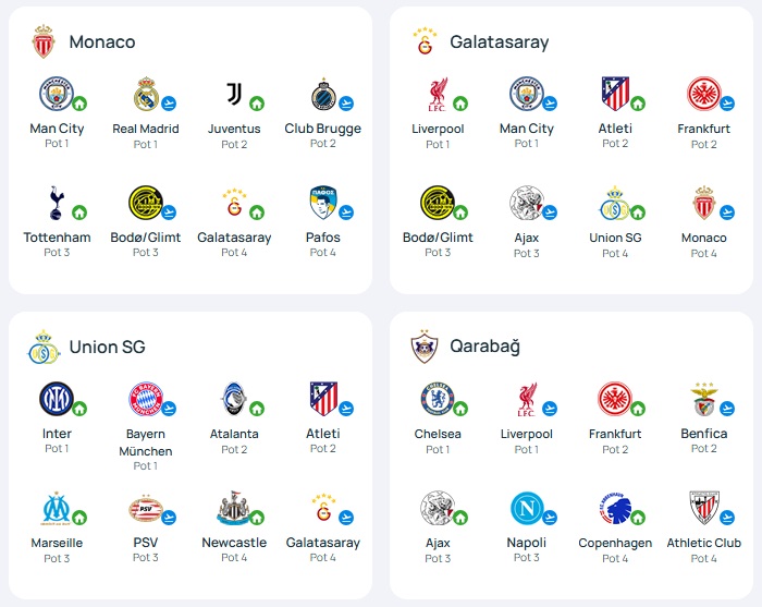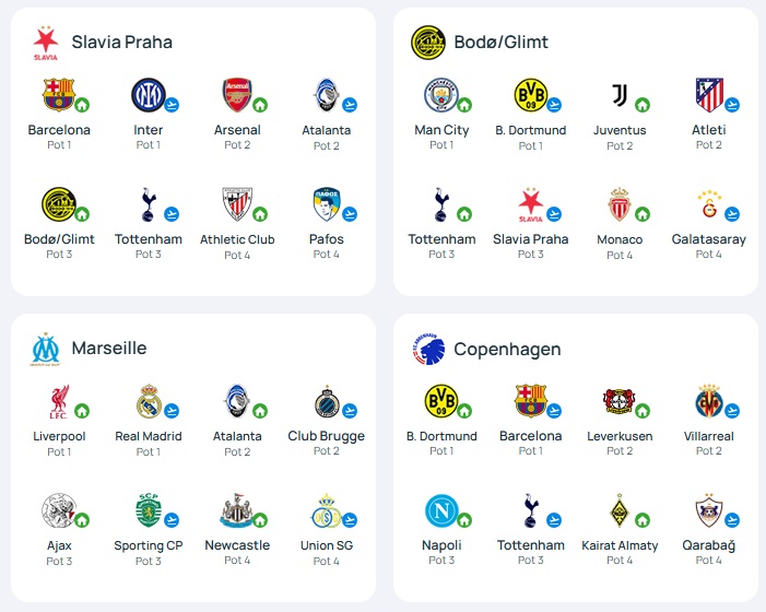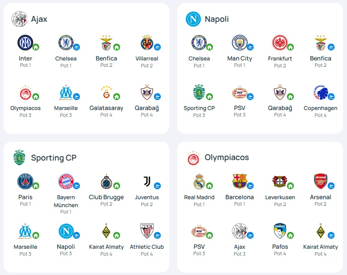Los equipos clasificados del 1° al 8° de la fase liga pasarán directamente a los octavos de final. Del 9° al 24° se clasificarán a los 16avos de final y disputarán una instancia más de la competencia.