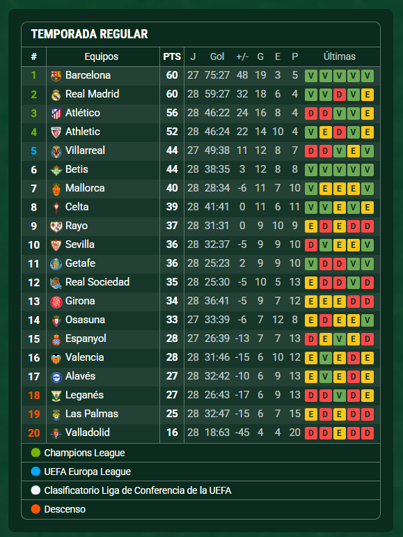 La Liga está al rojo vivo y la tabla de posiciones quedó en un estado infernal con un Barcelona que le ganó una final al Atlético de Madrid en el Metropolitano y volvió a la cima del torneo junto con el Real Madrid. Así quedaron las ubicaciones con el final de la fecha 28.