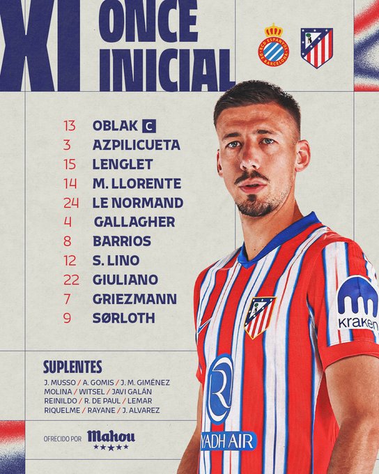Este partido es esencial para el equipo, ya que necesita sumar tres puntos en su visita al Espanyol para mantenerse en la parte alta de la clasificación. Con un Atlético de Madrid más fuerte y renovado, Simeone buscará liderar a su equipo hacia una victoria importante que consolide su posición en LaLiga.