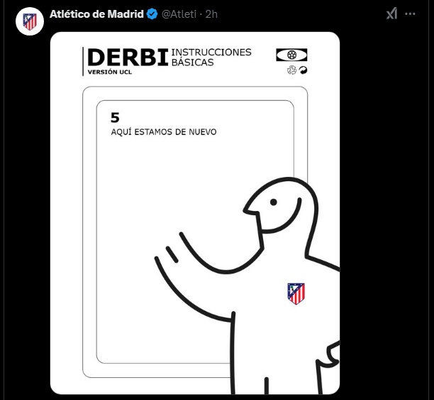 Atlético de Madrid volvió a las redes sociales después de saber su rival de los octavos de final de la Champions League y ya empezó a calentar el derbi internacional con el Real Madrid.