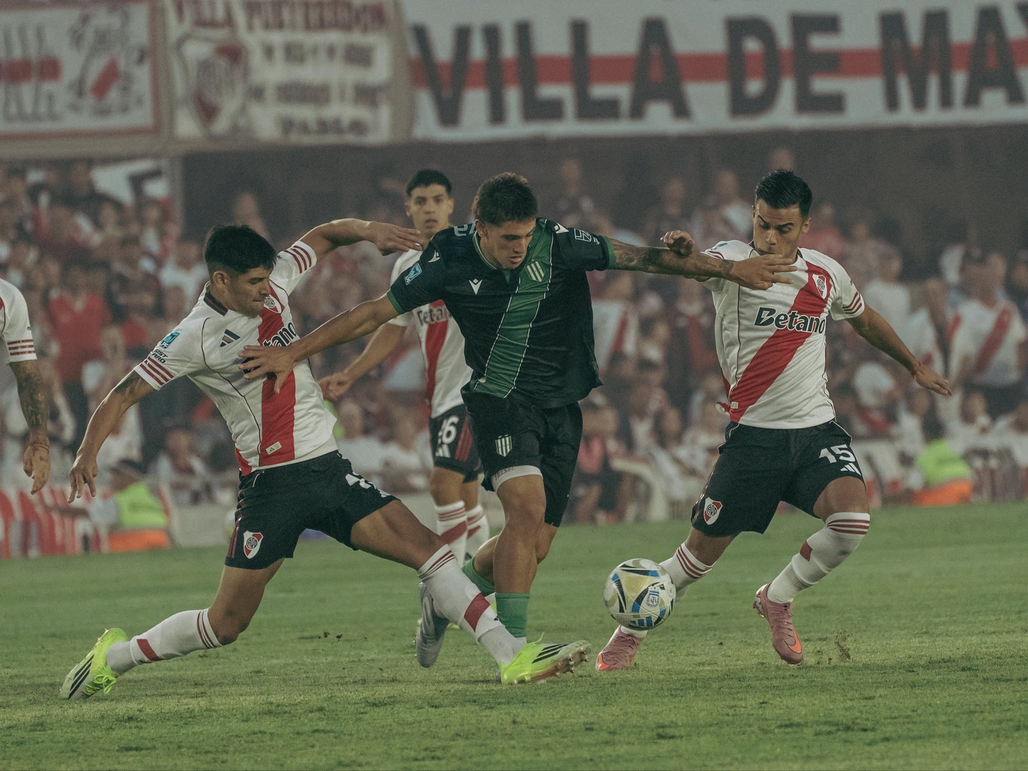 El primer tiempo se moría y River aventajaba con gol de Lucas Martínez Quarta. Hasta que, sobre los 45 minutos, Banfield llegó al empate por intermedio de Mauro Méndez que sería convalidado y rectificado mediante revisión del VAR para el 1-1 parcial.
