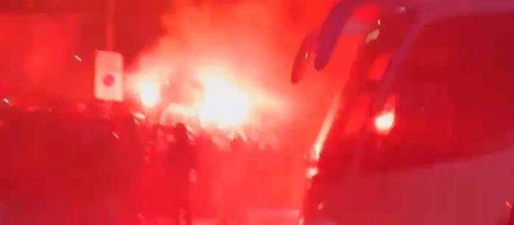 El bus de Barcelona ingresó al estadio envuelto en una marea de fuego colorado. A puro cántico, incluso contra Real Madrid, los locales le dieron total apoyo a los dirigidos por Hansi Flick. El brillo continuó cuando llegó Atlético Madrid aunque ese fue más hostil.