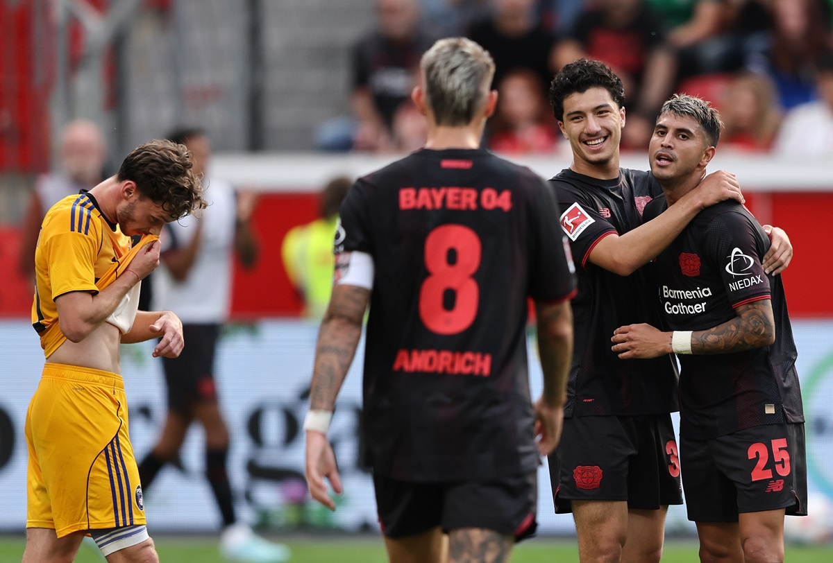 Todo lo del local se vio en la etapa inicial. A los 4 minutos, Alejandro Grimaldo levantó un tiro libre y Robert Andrich conectó frente al arco para poner el 1 a 0. Luego, ya transcurrido el cuarto de hora, Christian Kofane de contragolpe amplió la ventaja.