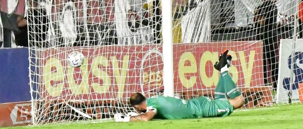 Se jugaba el descuento en Santa Fe cuando Gonzalo Dell Aquila mandó un centro desde la derehca. Cristian Núñez recibió por izquierda sin marca pero sin ángulo. Así eligó descargar hacia afuera con Elías Britez. El ex Aldosivi castigó con un derechazo y Marcos Díaz, en lugar de embolsar, la mandó adentro de su cueva.