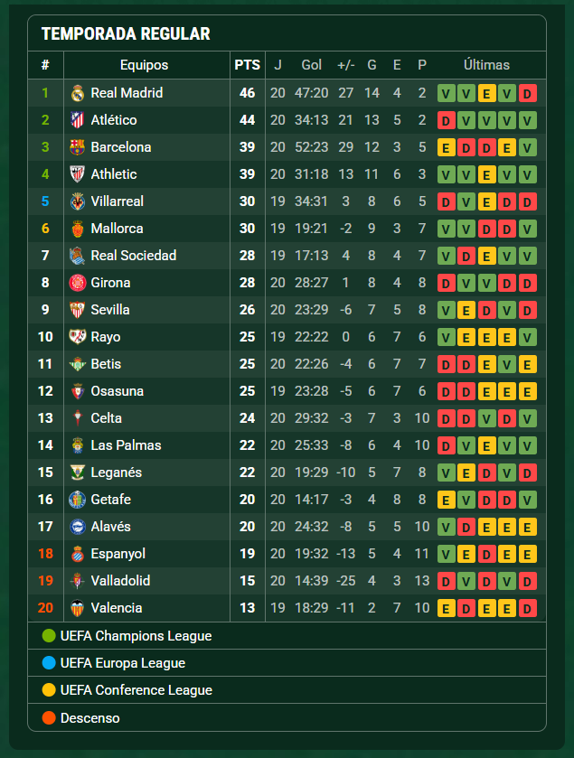La tabla de posiciones de La Liga después de la victoria del Real Madrid