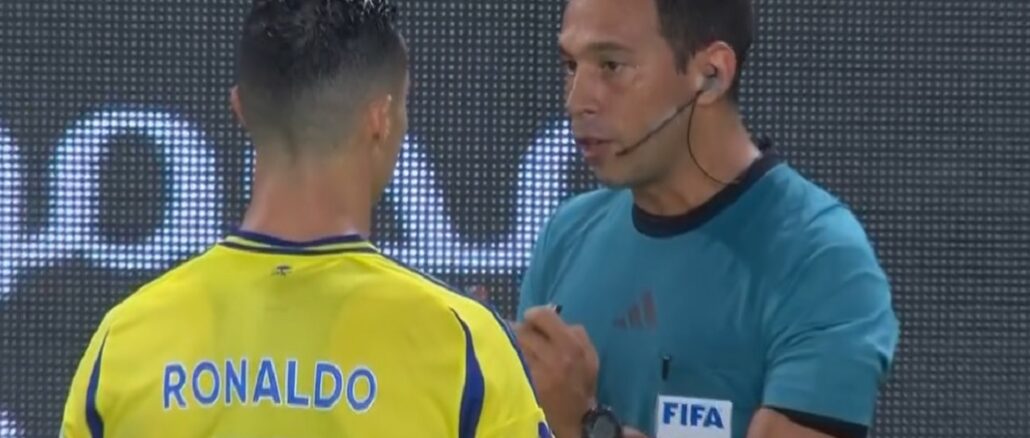 El árbitro argentino había anulado el gol de Cristiano Ronaldo que significaba el 2 a 1 parcial de Al Nassr contra Al Shabab. Cuando sonó el silbato de Facundo Tello, el portugués estalló de bronca y habló con cuanta autoridad pudiese. El VAR le terminó dando el visto bueno al portugués finalmente.