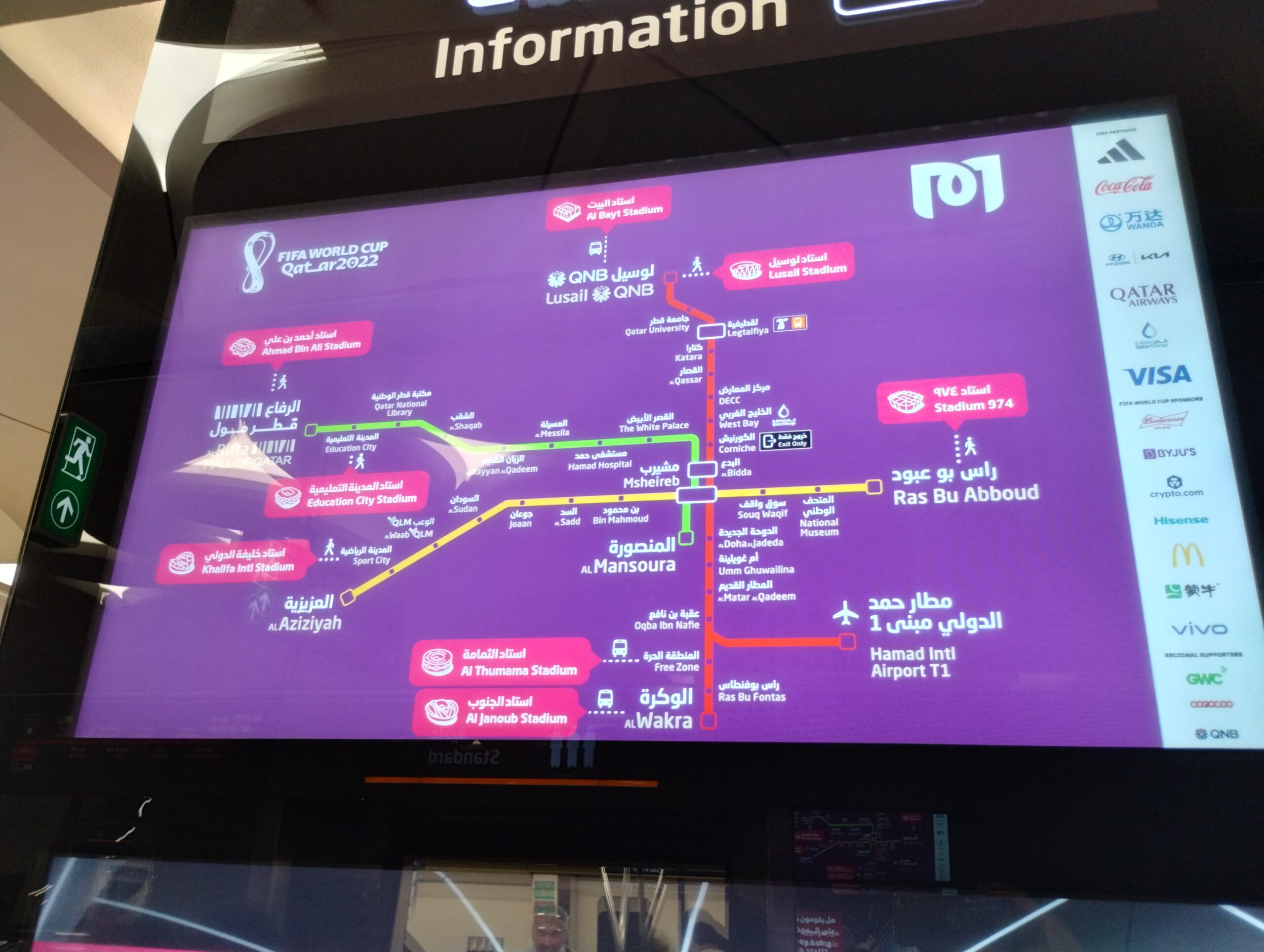 La estación del Metro del Aeropuerto Internacional de Hamad tiene una particularidad: repasa todos los campeones mundiales de la historia y obviamente recuerdan los trofeos de Argentina de 1978 y 1986 con imágenes de la Albiceleste.