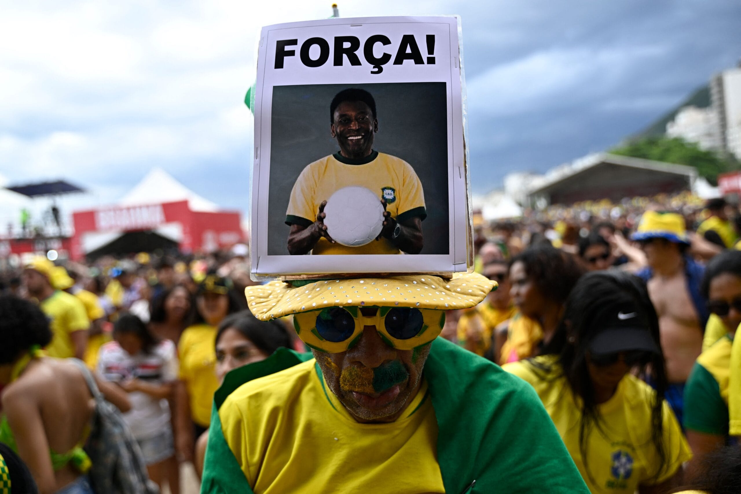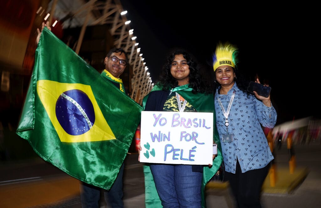 ‘Fuerza’ y ‘Brasil gana por Pelé’ fueron los mensajes que se repitieron en las pancartas en los aficionados de la Verde Amarelha, como también le dedicaron la famosa canción: «Mil goles, mil goles, solo Pelé, solo Pelé, Maradona aspirador».