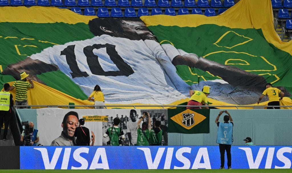 Los fanáticos de Brasil recordaron a la leyenda Pelé ante su crítico estado de salud en el enfrentamiento de la Canarinha con Corea del Sur en el estadio 974. Banderas, carteles y un trapo grande en medio del juego en el Mundial de Qatar 2022, algunos homenajes a ‘O Rei‘.