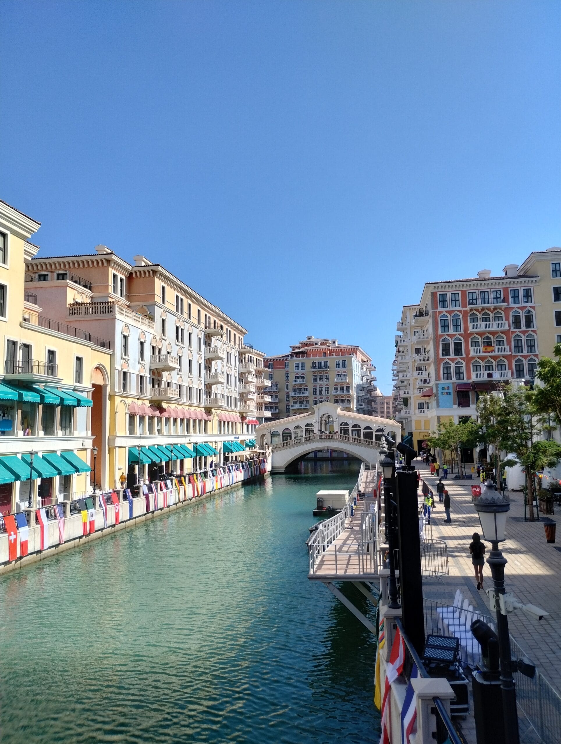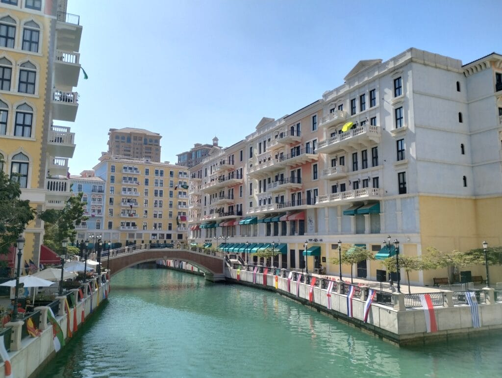 La ciudad de Doha esconde un pequeño y colorido barrio en la isla artificial de La Perla llamado la pequeña Venecia, una obsesión de la familia real Al Thani ante su adoración por la atractiva localidad italiana. Tiene todos los lujos con la estética de sus estructuras edilicias, canales y hasta el famoso puente Rialto, el más antiguo de los calles venecianas.