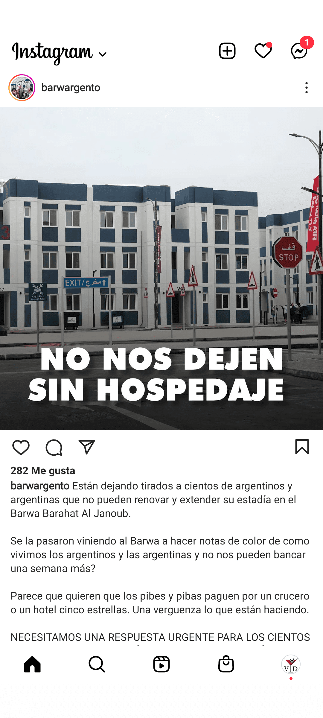 «Están dejando tirados a cientos de argentinos y argentinas que no pueden renovar y extender su estadía en el Barwa Barahat Al Janoub. Parece que quieren que los pibes paguen por un crucero o un hotel cinco estrellas. Una vergüenza lo que están haciendo», escribieron en la cuenta oficial del grupo de fanáticos que se hospedan en dicho alojamiento.