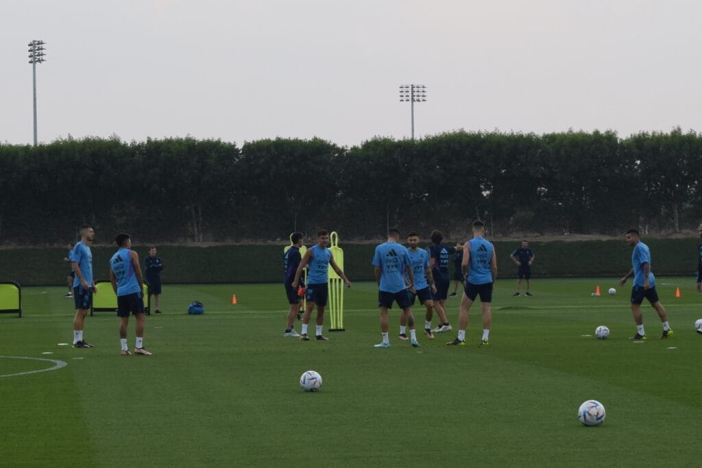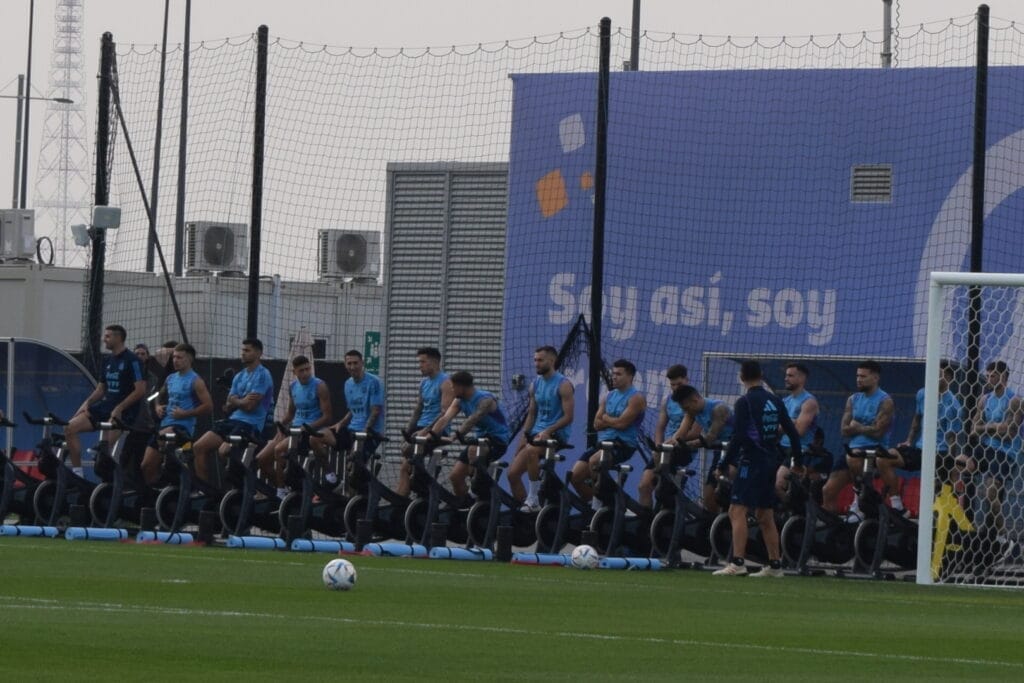 Todos el plantel profesional salió al campo incluso Angel Di María y Rodrigo De Paul, ambos con sus molestias físicas latentes. Sin embargo, fue una buena señal la presencia de todo el equipo en la práctica después de la intensa noche del estadio Lusail.