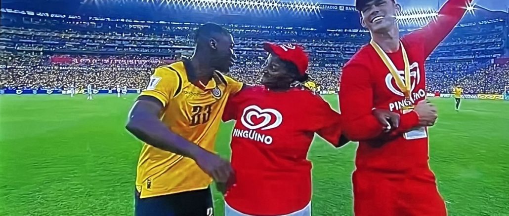 La sorpresa de la previa la dio la madre de Moisés Caicedo que salió acompañada por un asistente de la marca de Helados Pingüino de Ecuador. El jugador vio la situación y no dudó ni un segundo desplazarse hacia la ubicación de su mamá para saludarla y abrazarla.