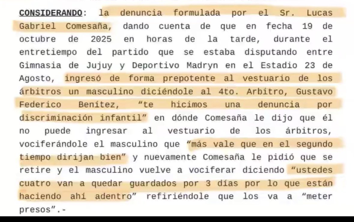 El Fútbol Argentino nunca termina de sorprender y el reducido de la Primera Nacional vuelve a regalar otro capítulo más en el escándalo que fue el partido entre Gimnasia de Jujuy y Deportivo Madryn en el estadio 23 de agosto. Ahora, la Unidad Fiscal Especializada en Delitos contra la Propiedad e Integridad de las Personas de Jujuy desestimó la denuncia de amenazas del árbitro Lucas Comesaña y le agrega la frutilla del postre a un encuentro suspendido que terminó en derrota en el escritorio del Lobo.