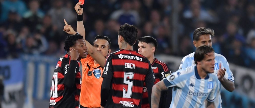 Flamengo explotó por la roja a Gonzalo Plata ante Racing, y la Academia tiene la chance de cerrar el partido en superioridad numérica.