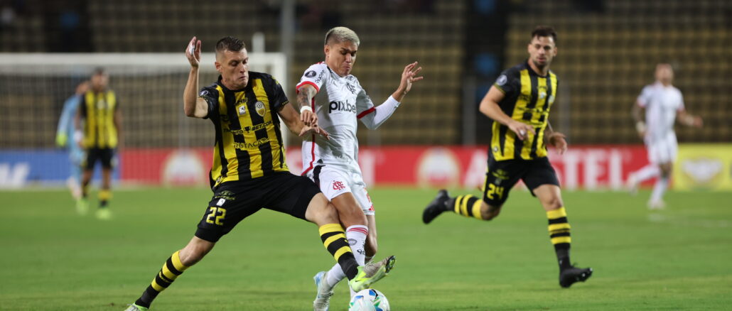 Sin tener un gran control del juego, la visita se hizo cargo de lo que le correspondía desde el comienzo y en los primeros minutos avisó con un tiro de Luiz Araújo. Después la tuvo Bruno Henrique, con gran intervención del arquero Jesús Camargo y antes del entretiempo el propio Araújo no pudo anotar.