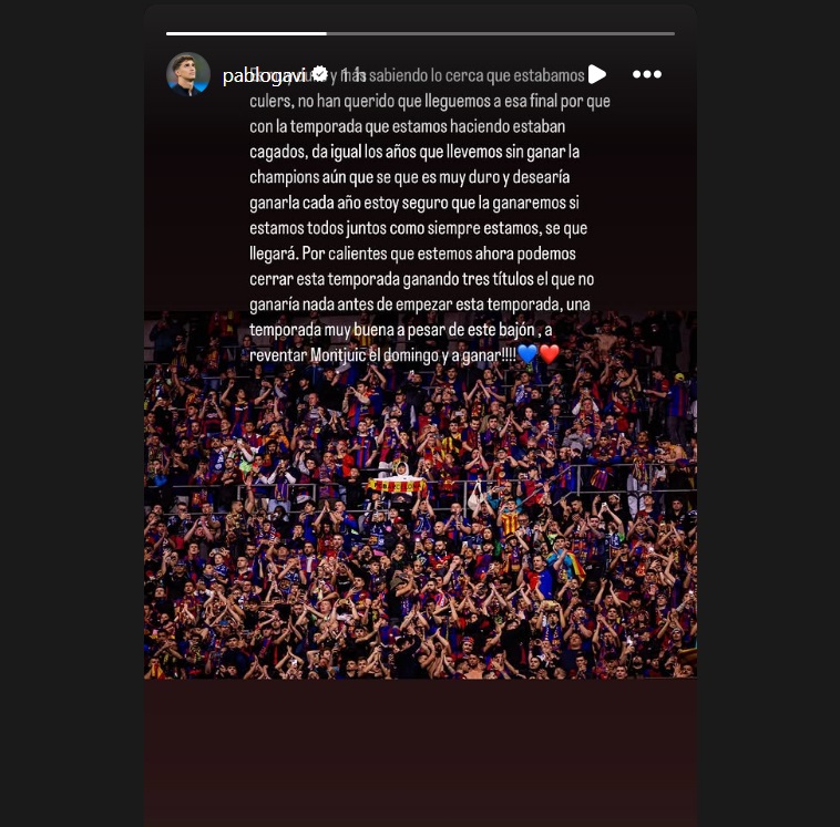 Gavi, mediocampista del Barcelona, explotó en su cuenta de Instagram y se quejó por el arbitraje que le impidió al Blaugrana pasar a la final de la Champions League en el partidazo contra el Inter en Milán. El mensaje fue directo a cómo los perjudicaron pero también dio unas palabras de aliento para terminar la temporada con el título de La Liga de España.
