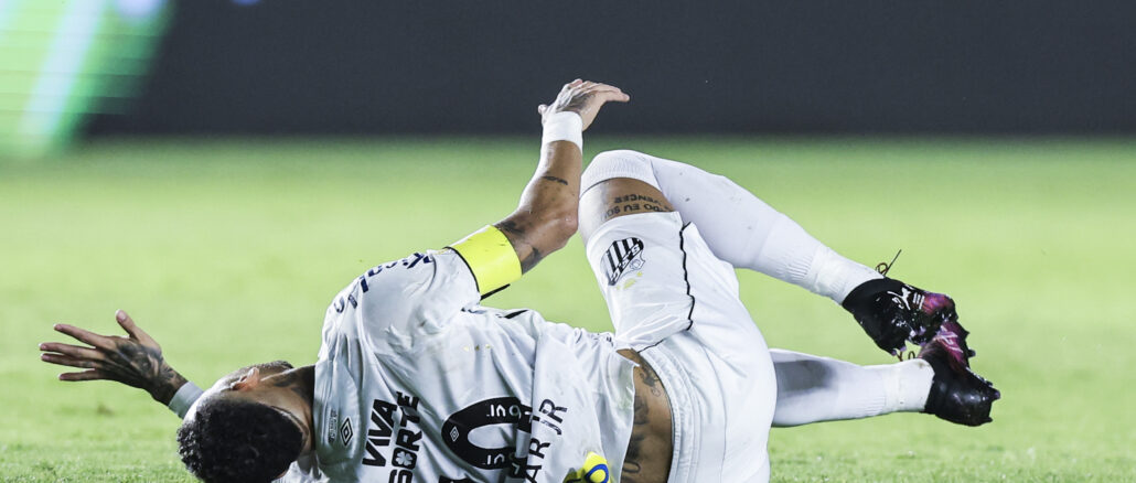 ‘Ney’ acusó el golpe, trastabilló y se tiró al cesped del dolor de una primera pelota que no contaba en su regreso al Santos.