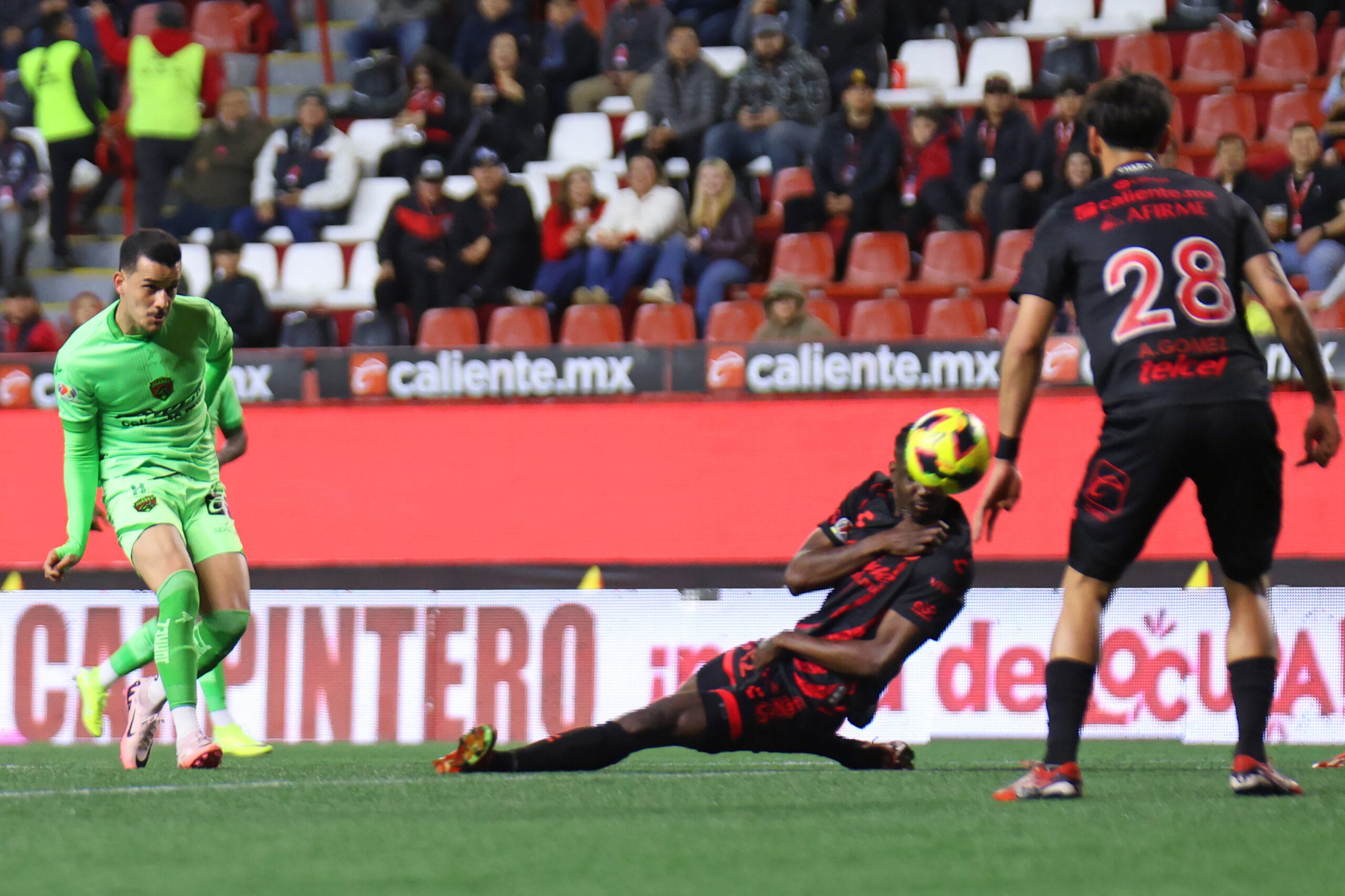 En Baja California se daba el clásico fronterizo donde los Bravos llegaban mejor que los Xolos pero el que antes de los dos minutos se puso arriba fue Tijuana que con José Zúñiga abrió la cuenta en favor del equipo de Osorio. Con el correr del primer tiempo el trámite se empantanó en el mediocampo entre infracciones pero poca acción en las áreas de Miguel Ortega y Sebastián Jurado hasta que Juárez se animó a pisar el área con rápida transición donde Guilherme Castilho a los 20 minutos. El jamaiquino Shamar Nicholson, referencia ofensiva de Xolos, lo tuvo a boca jarro pero con nula definición. Los gravísimos errores defensivos en ambos equipos entregaban incontables oportunidades y con la chambonada monumental entre el portero visitante con García le regalaba a la Pantera Zúñiga la chance del segundo en favor del local pero fue anulado por offside.