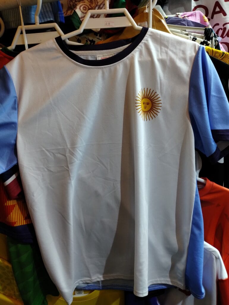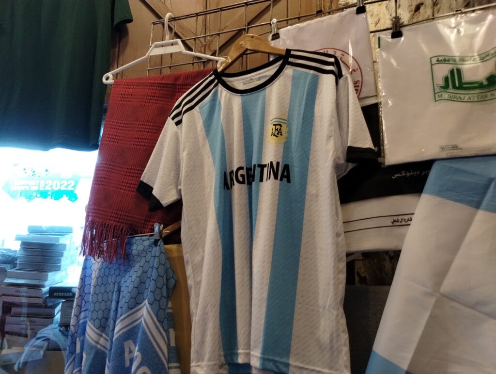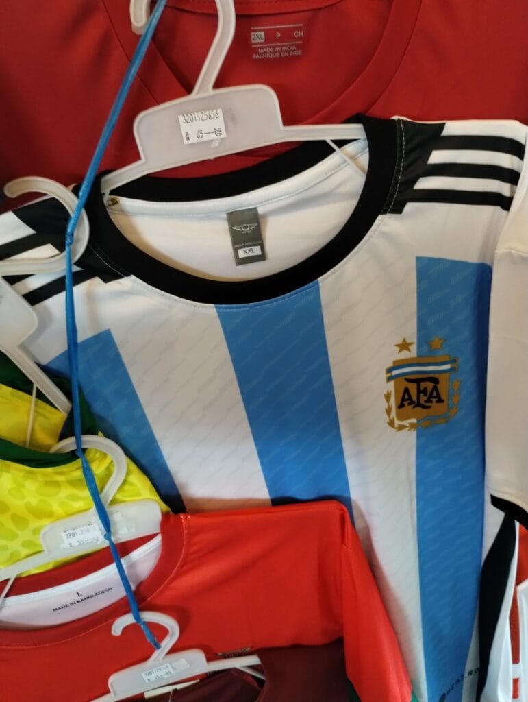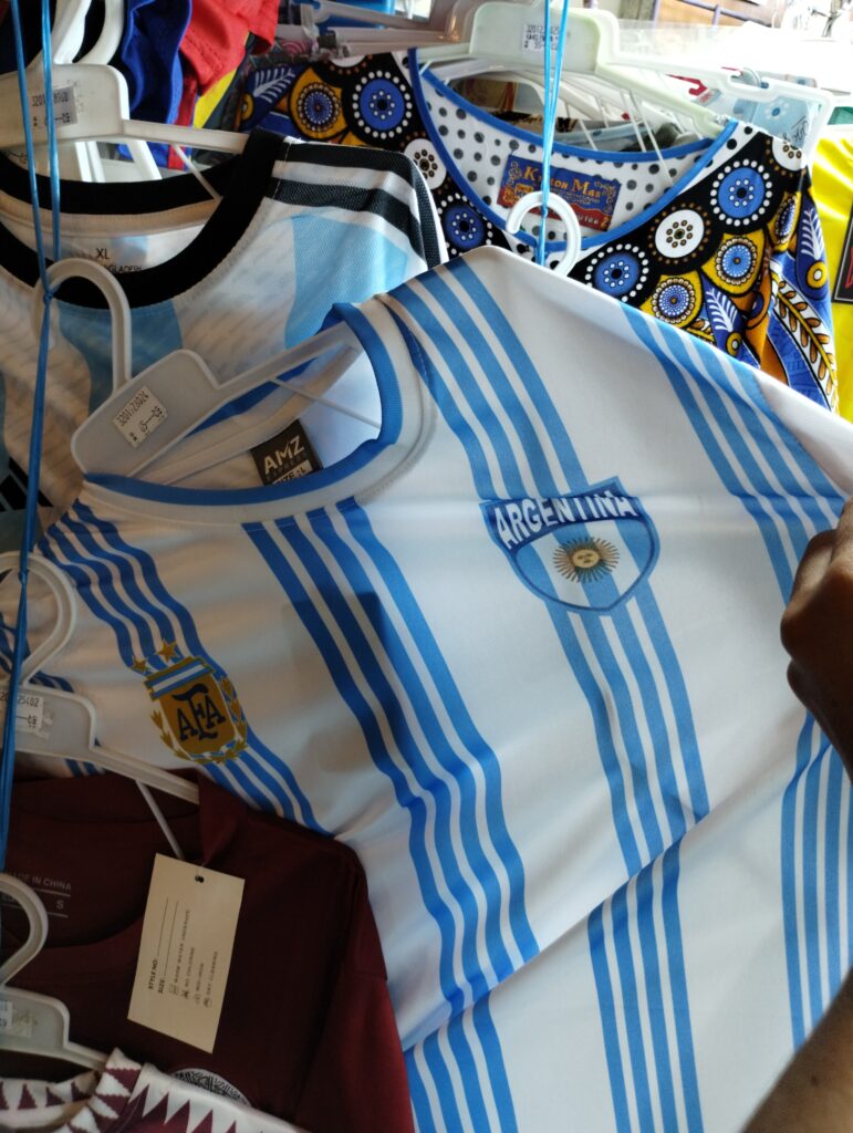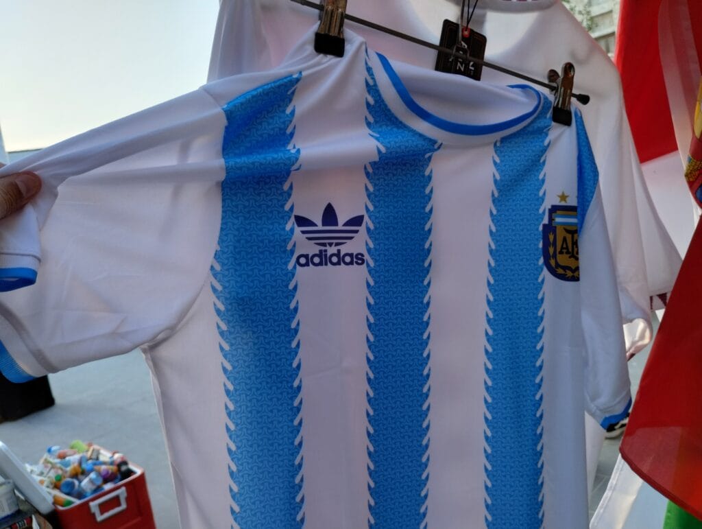Es increíble todas las diferentes remeras Albicelestes que se hallan paseando por este mercado clásico de la Ciudad de Doha. Con o sin marca. Con el escudo bordado, impreso y hasta distintos modelos del logo de AFA. Con el nombre del país. ¡Increíble!