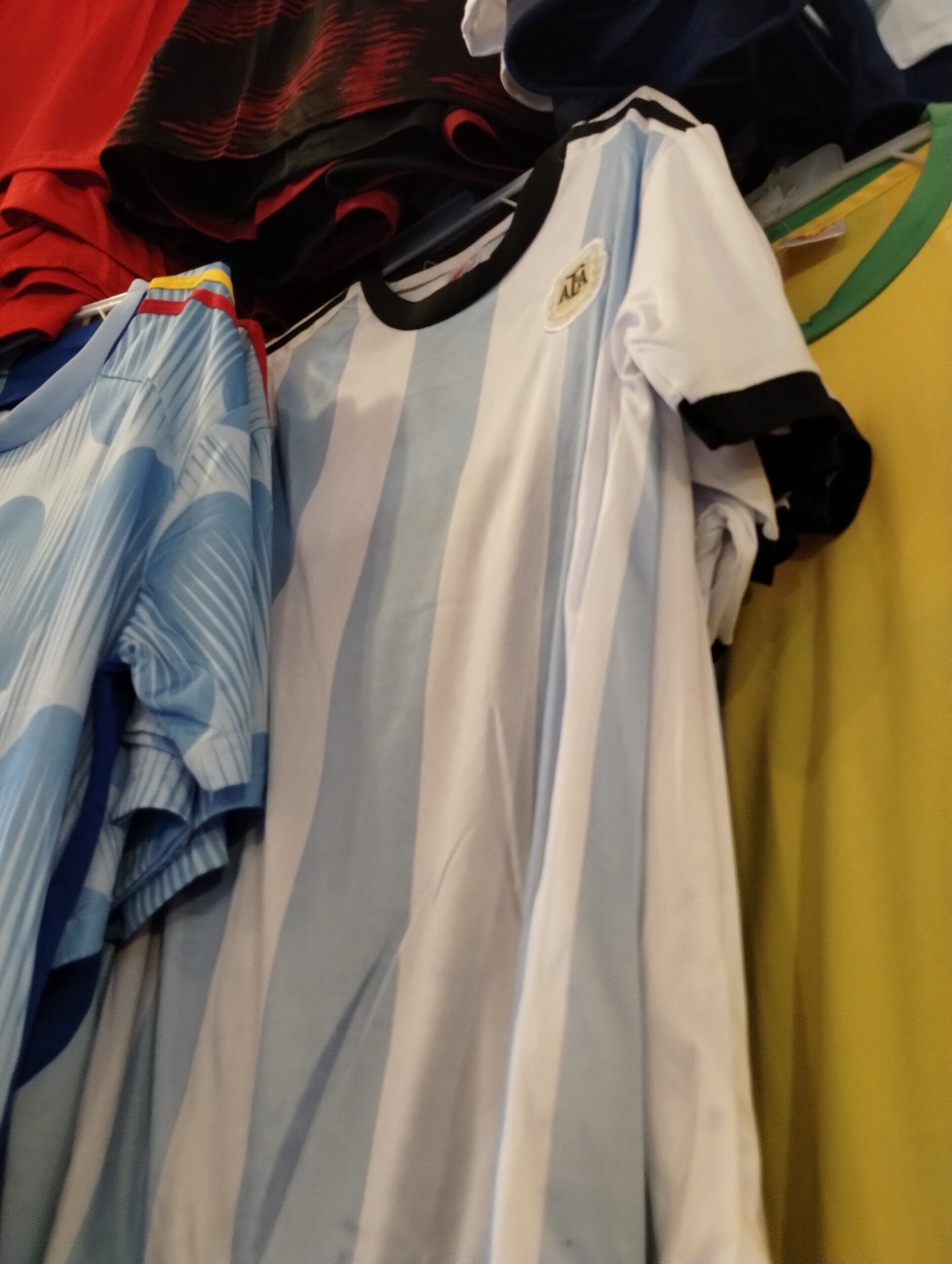 Es increíble todas las diferentes remeras Albicelestes que se hallan paseando por este mercado clásico de la Ciudad de Doha. Con o sin marca. Con el escudo bordado, impreso y hasta distintos modelos del logo de AFA. Con el nombre del país. ¡Increíble!