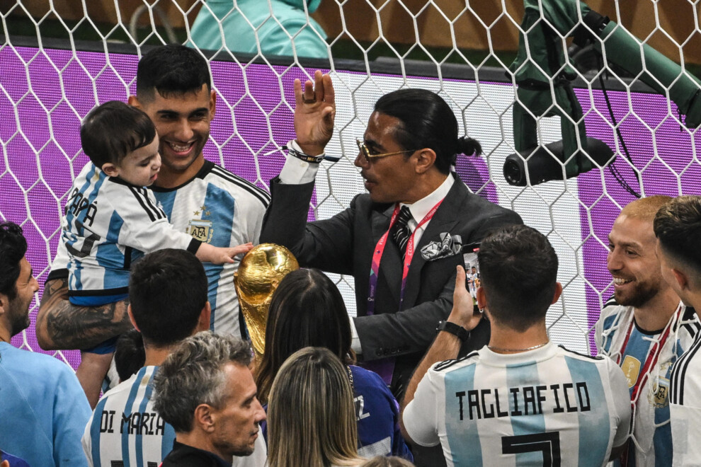 Todo comenzó con videos virales a través de las redes sociales. En uno, Lionel Messi le negó el saludo, en otro Lisandro Martínez hacía fuerzas para que no le quite la copa de sus manos y, finalmente, el Cuti Romero terminó cediendo ante la insistencia de Nusret Gokce, más conocido como Salt Bae, de querer alzar el trofeo que Argentina le ganó a Francia por penales.