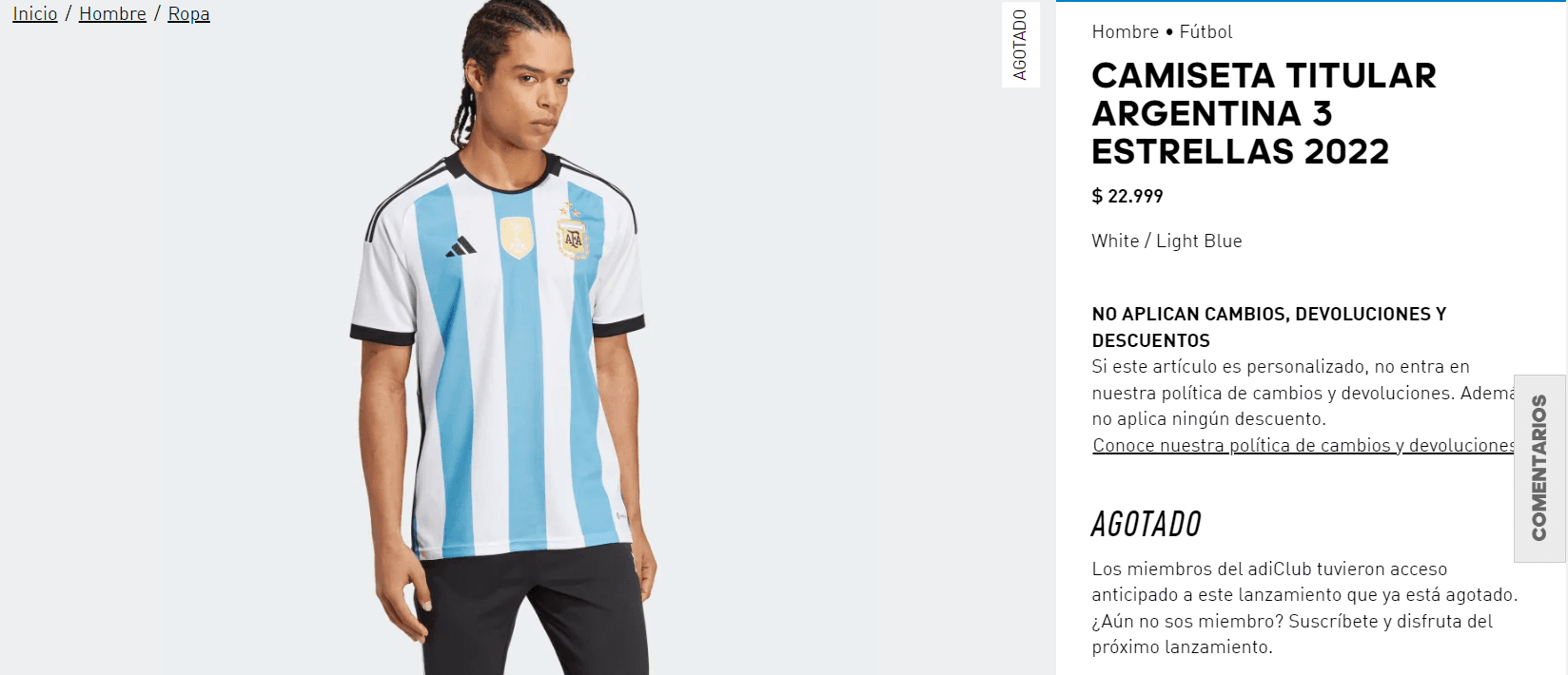 Adidas habilitó la venta virtual de la nueva camiseta de la Selección Argentina, con las tres estrellas en el escudo, sin embargo el producto fue marcado como “agotado” de forma casi inmediata.