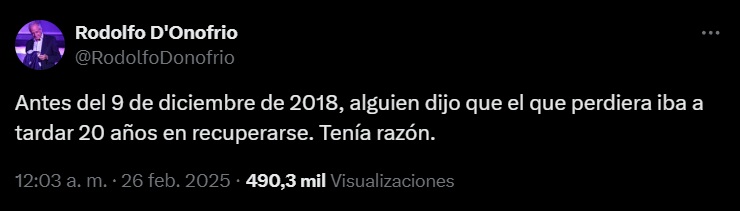 En aquella oportunidad Macri aseguró que “El que pierda tarda 20 años en recuperarse”, y D´onofrio reflotó aquella declaración con su tuit.