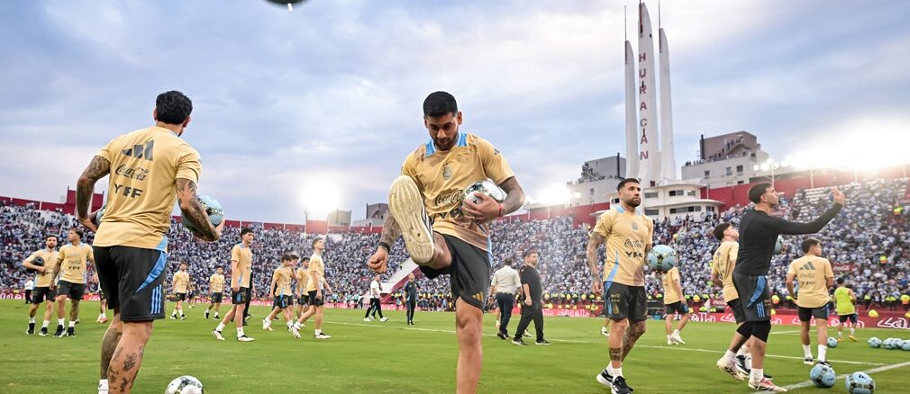 Argentina formó con Walter Benítez; Leo Balerdi, Germán Pezzella, Facundo Medina; Nico González, Rodrigo De Paul, Maxi Perrone, Benjamín Domínguez; Nico Paz; Ángel Correa y Santiago Castro.