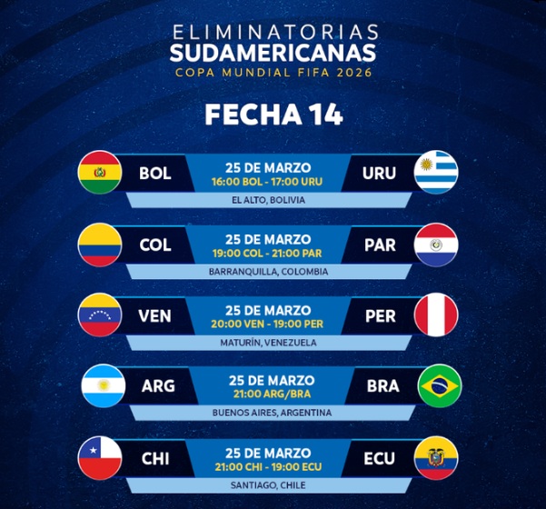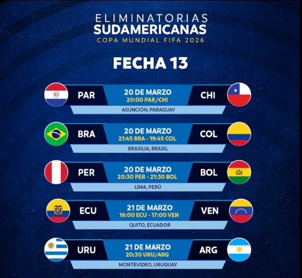 Las Fechas 13 y 14 de las Eliminatorias CONMEBOL ya tienen todo listo para su disputa. La casa madre del Fútbol Sudamericano oficializó días, horarios y sedes para una doble jornada que tendrá el Clásico de Sudamérica como plato fuerte.