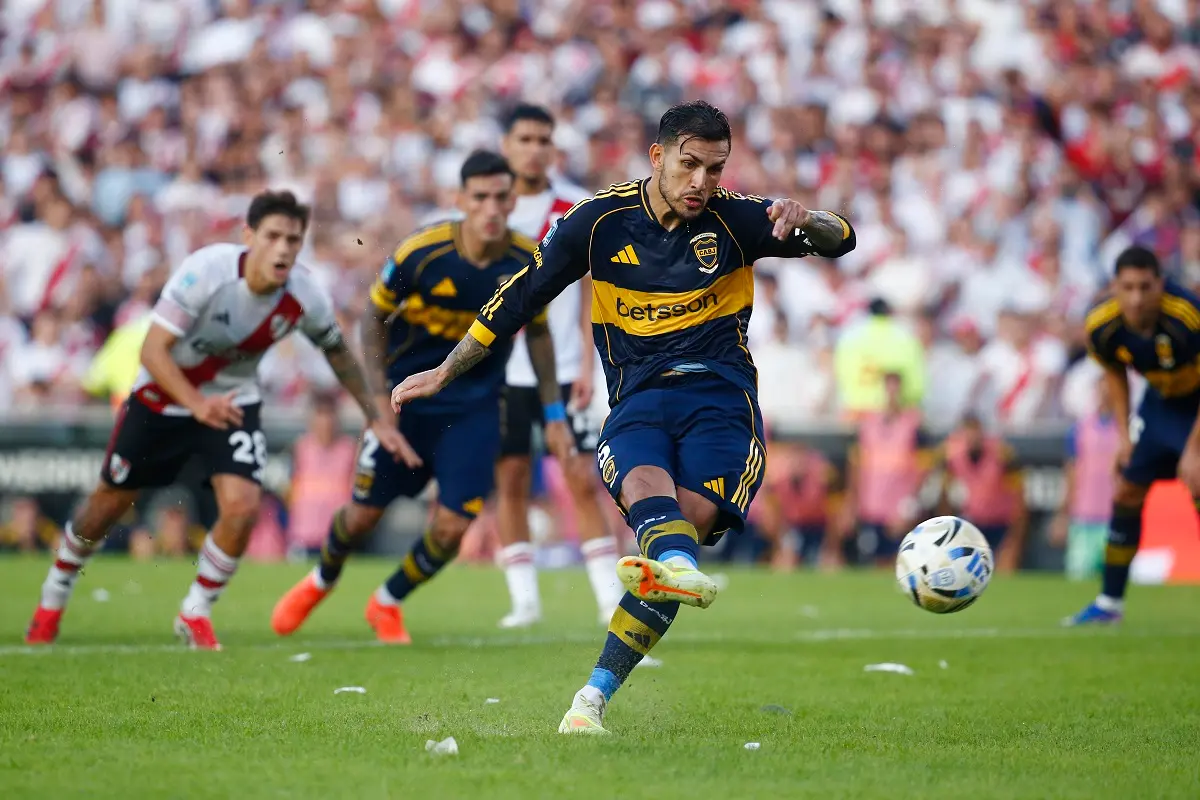 Rematando hacia un lado mientras Santiago Beltrán partía al otro, el capitán del Xeneize cambió penal por gol y establece la única diferencia con la que Boca se impone, de momento, a River en el Monumental.