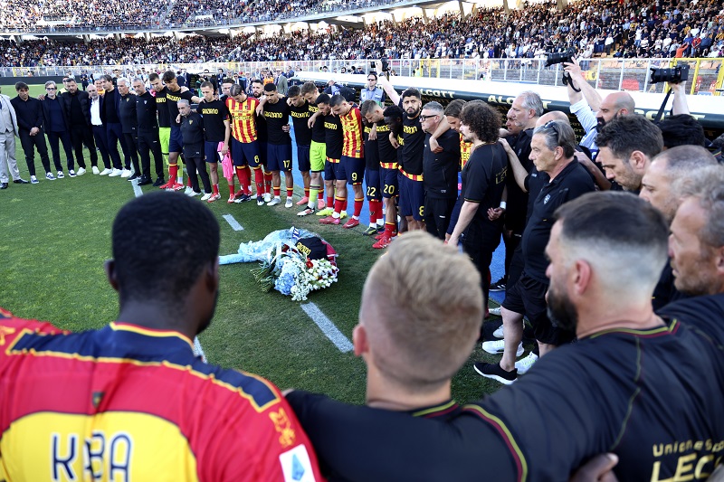 Antes del inicio del partido, todo el plantel del Lecce junto al cuerpo técnico y dirigentes se unieron en el césped para homenajear al preparador físico fallecido, Graziano Fiorita. Los hinchas guardaron silencio y le brindaron aplausos a un querido trabajador del club.