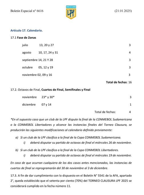 El calendario de fechas del Torneo Clausura de la Liga Profesional