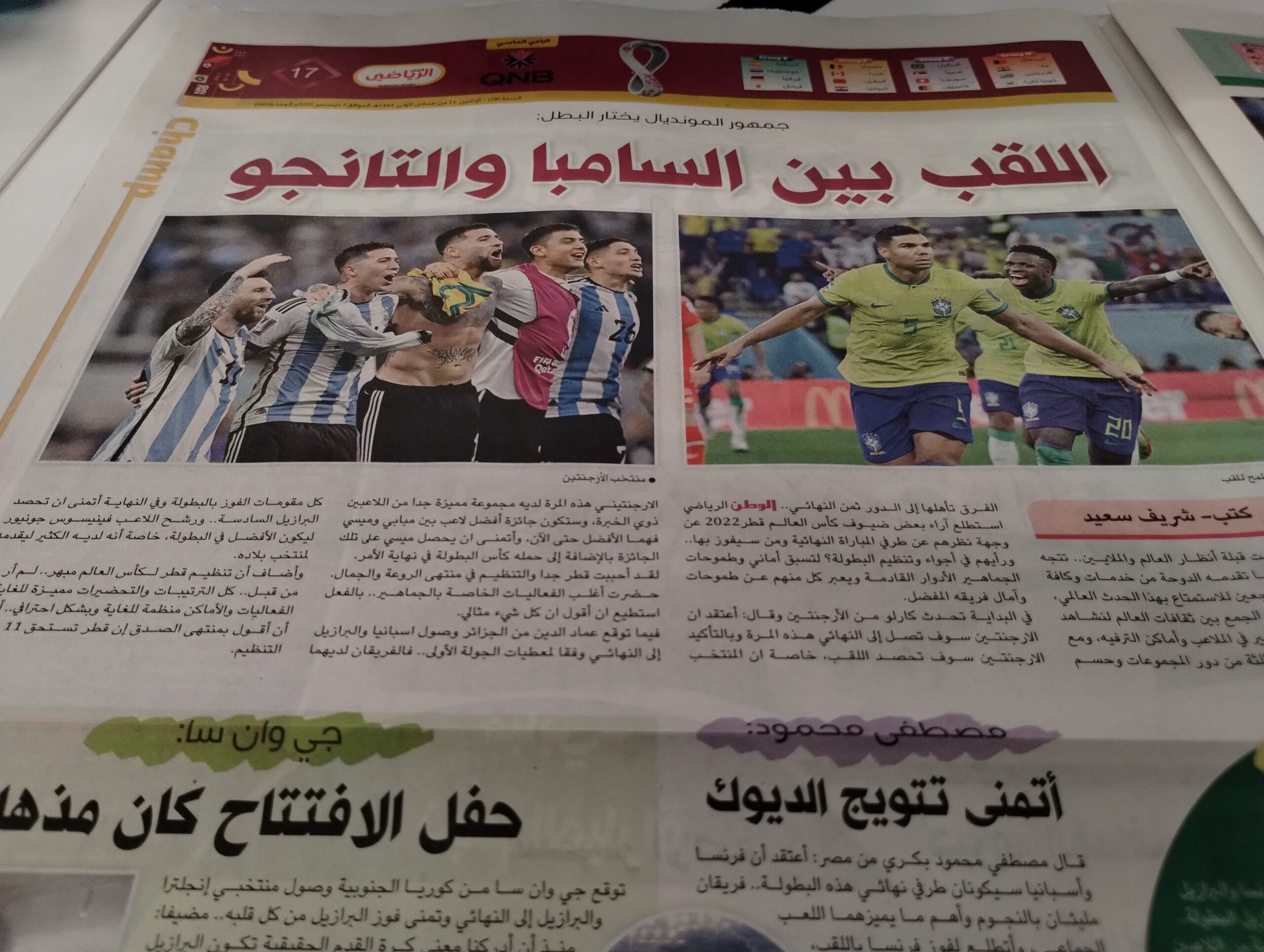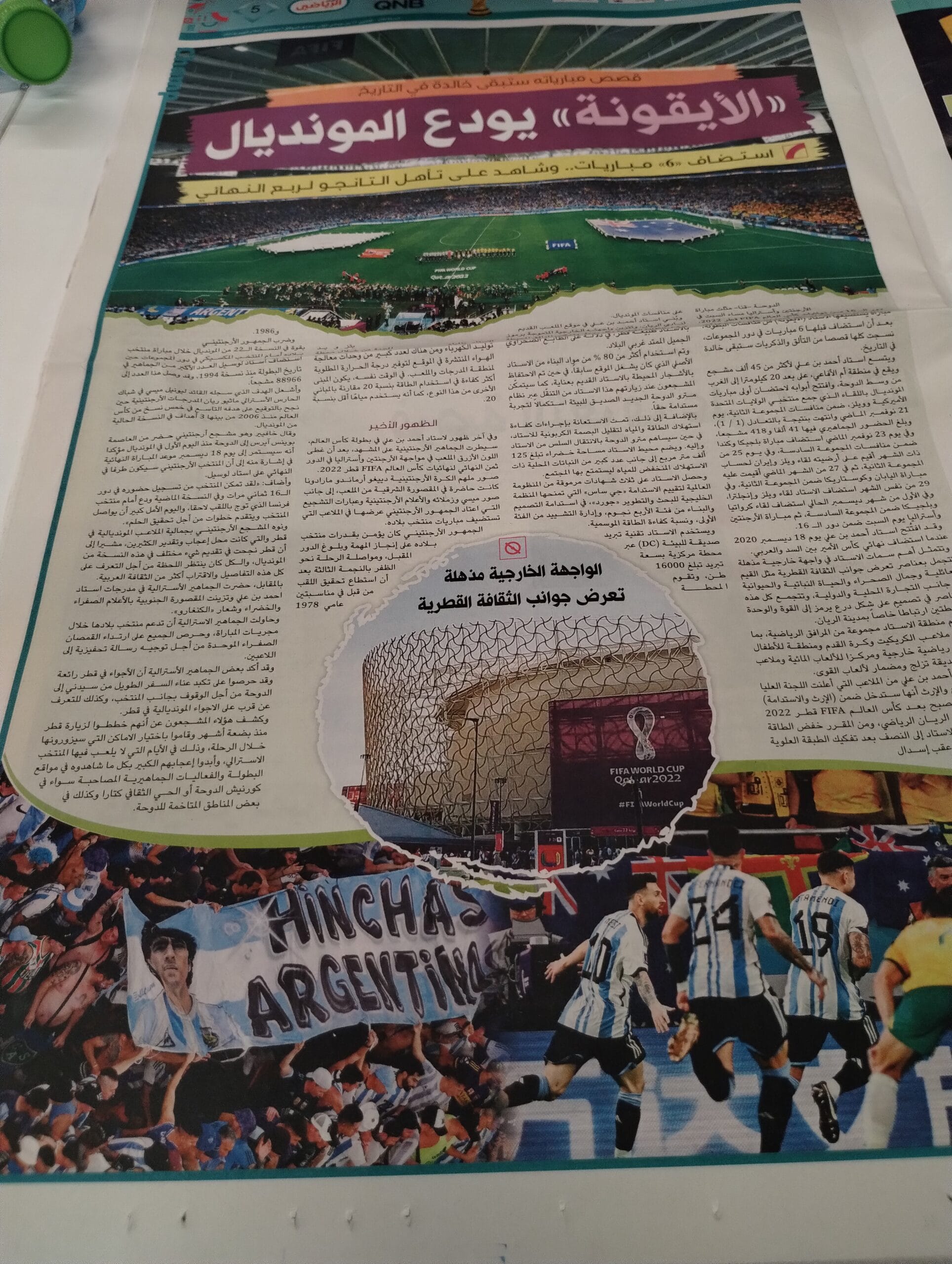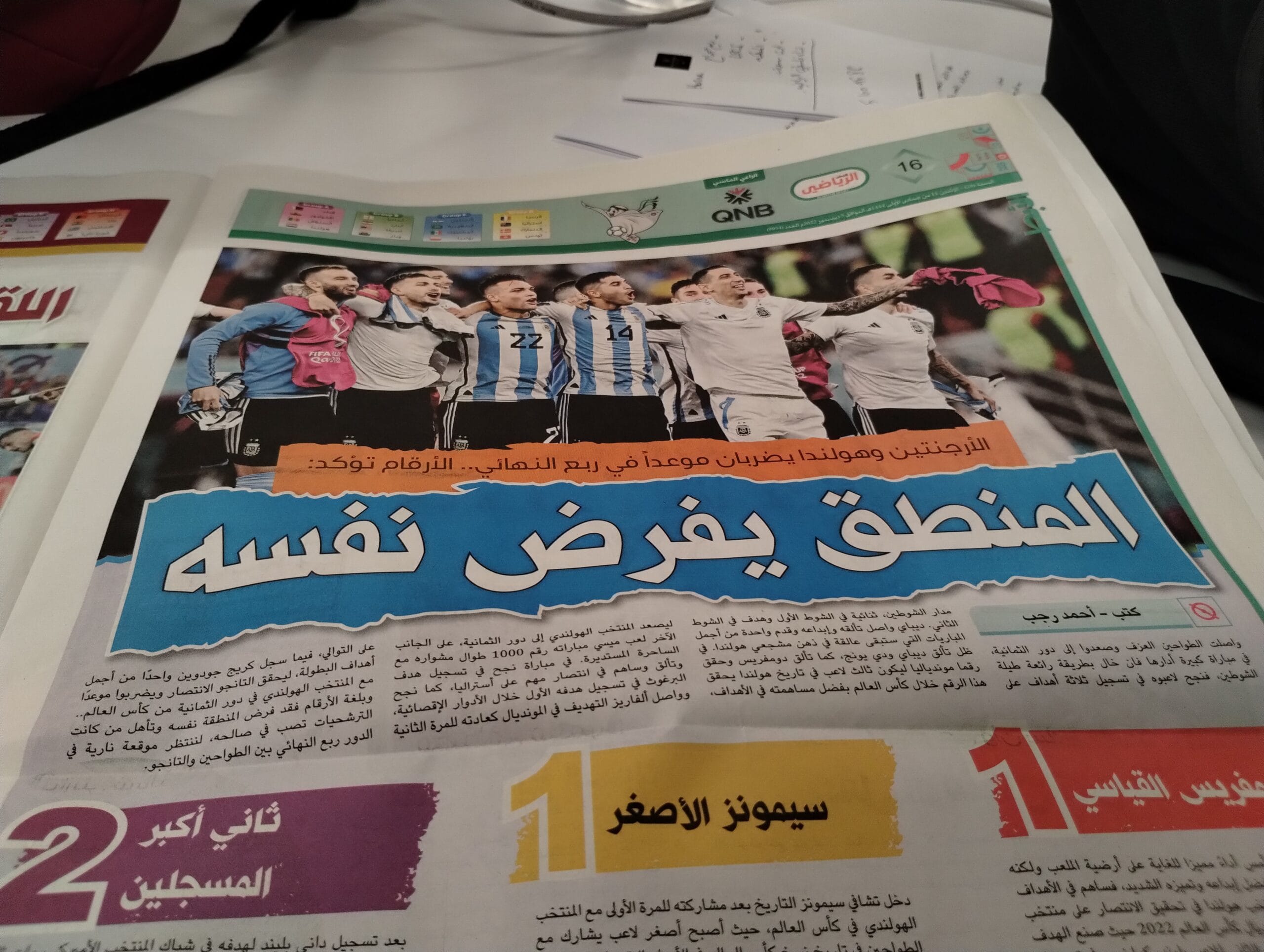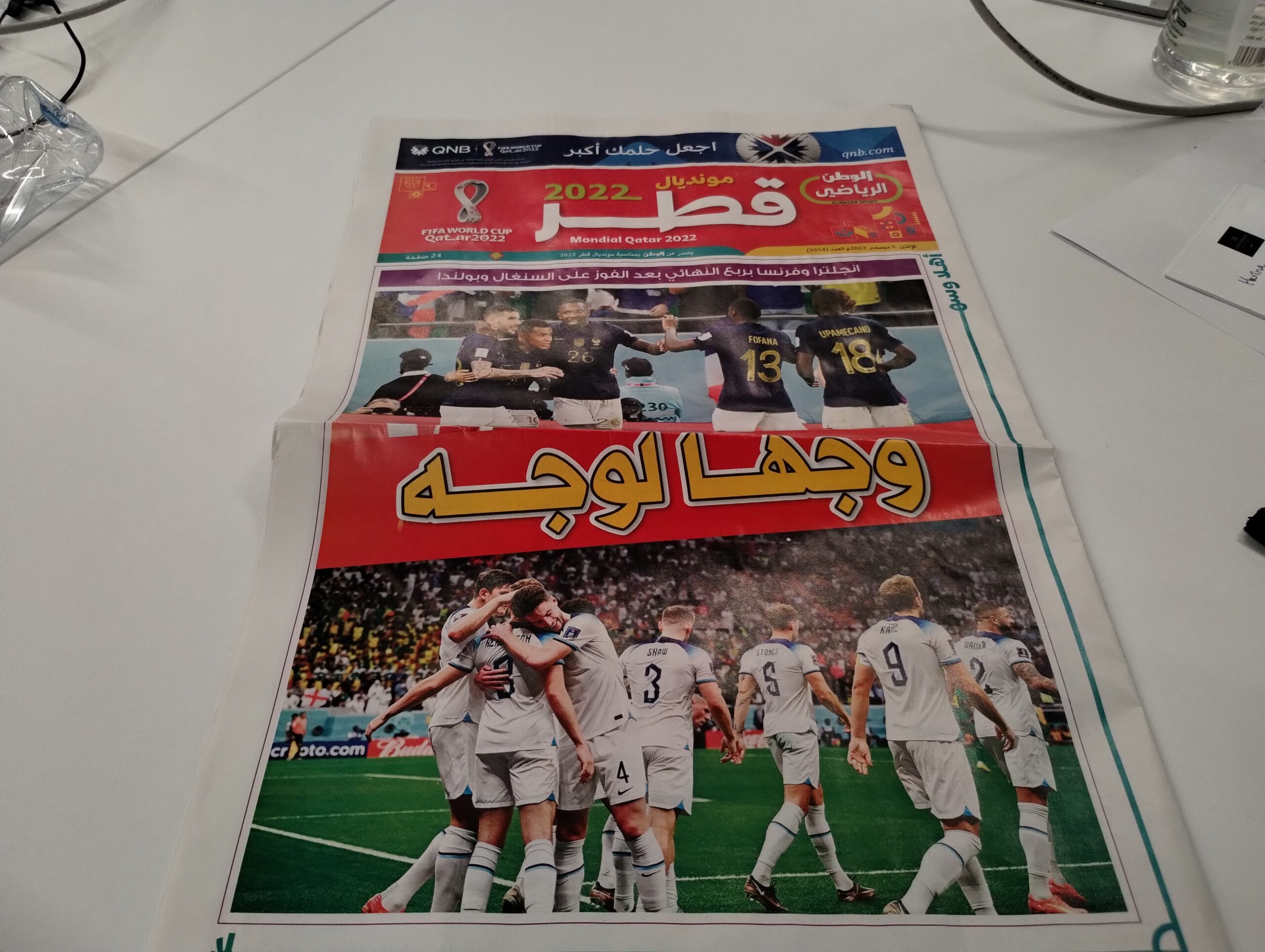 Francia e Inglaterra se llevaron la tapa del suplemento deportivo Alwatan SPORT por su pasaje a los cuartos de final del Mundial pero Argentina sumó más páginas por el atractivo que genera en tierras qataríes.