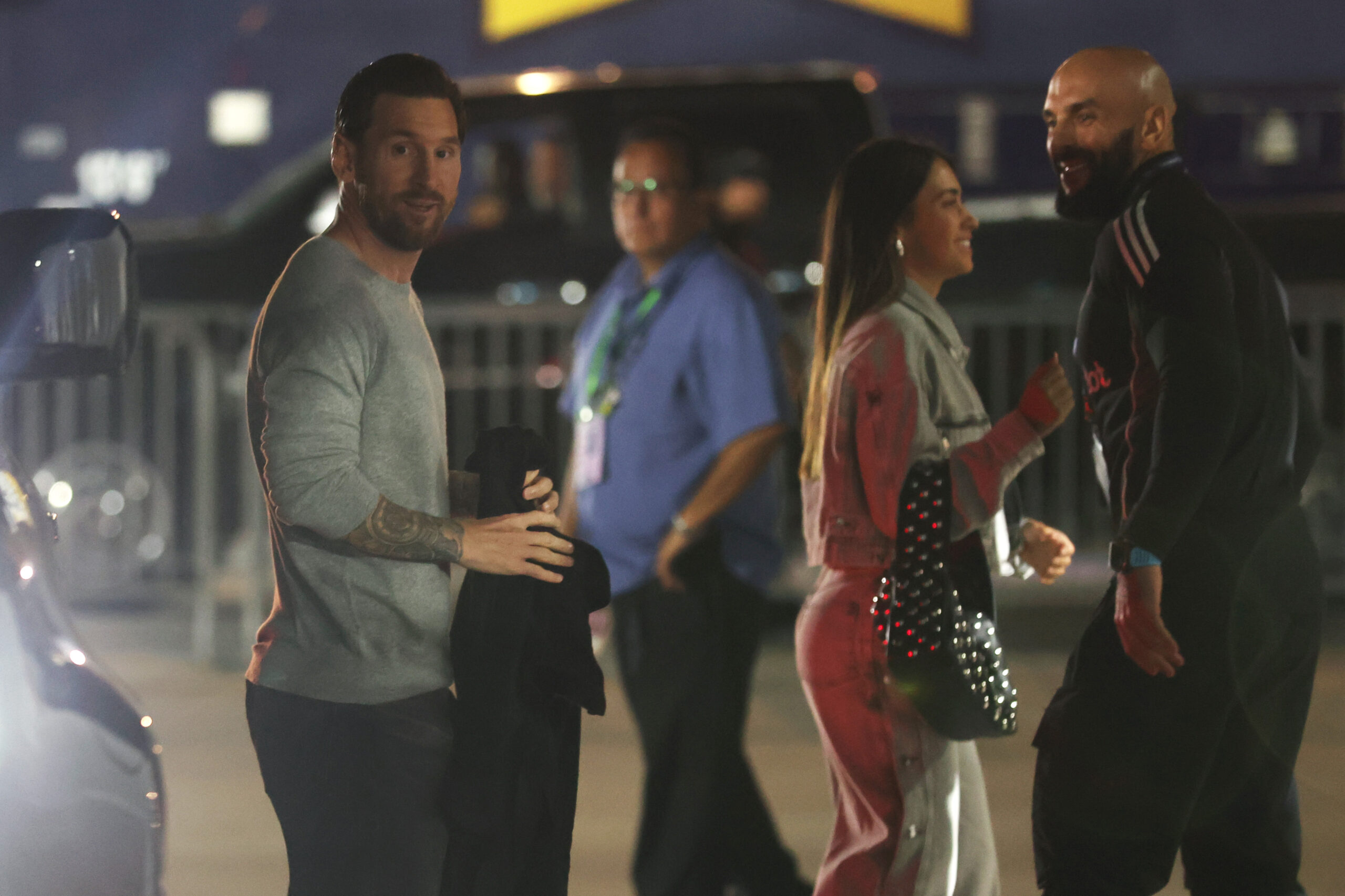 El crack llegó junto a su esposa al estadio en Fort Lauderdale para acompañar a sus colegas del Inter Miami frente al equipo jamaiquino por el torneo continental y miró el partido al lado de su compañera de vida en uno de los sectores vip del escenario rosa.