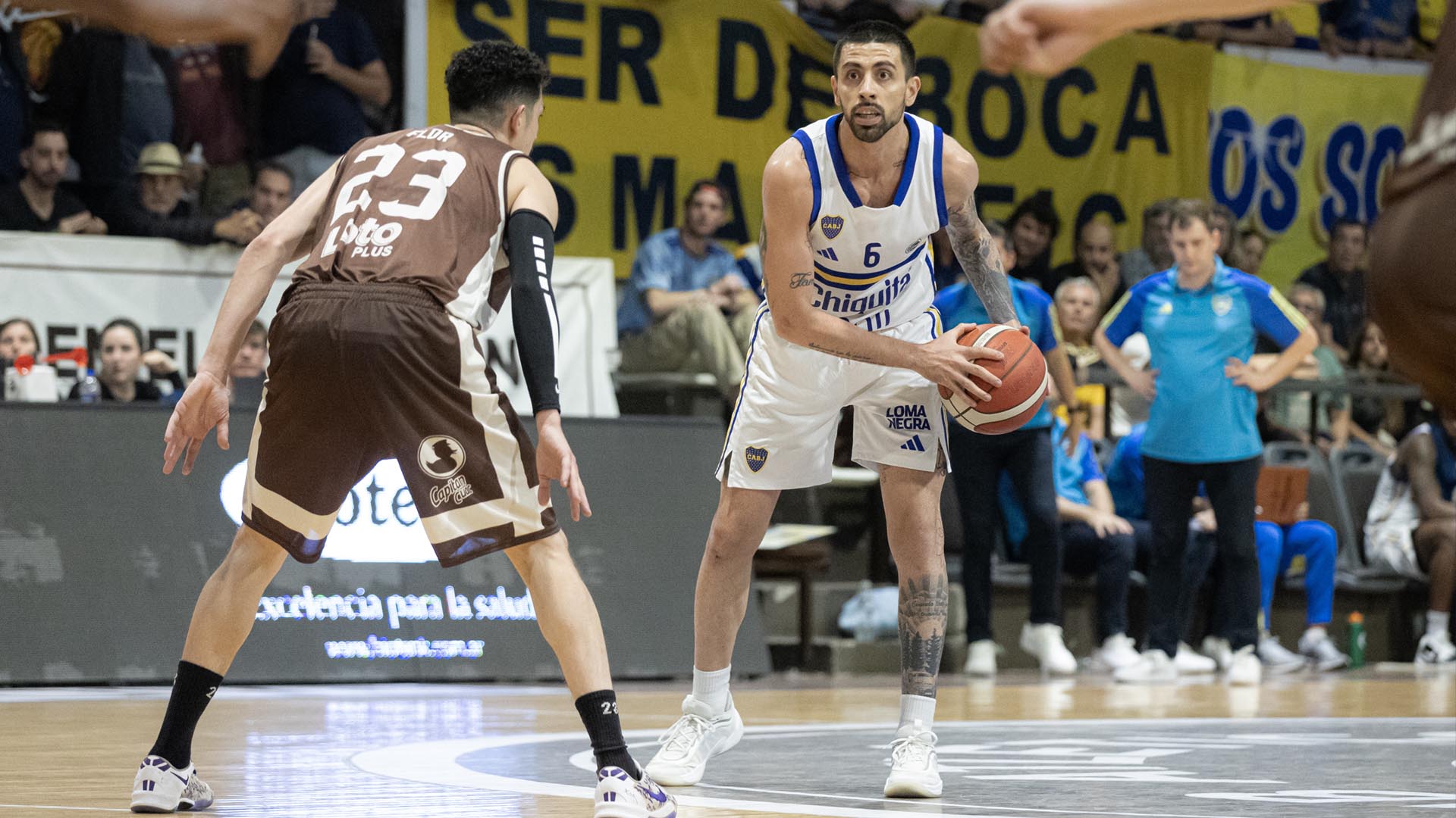 Iniciado el pleito fue Boca quien comenzó de mejor manera, lastimando una y otra vez con lo que sería su arma principal en toda la noche: el tiro de larga distancia. Santiago Scala (20 puntos y 6 de 7 en triples) era el líder en las bombas de larga distancia por parte de la visita que les permitiría tomar una primera ventaja.