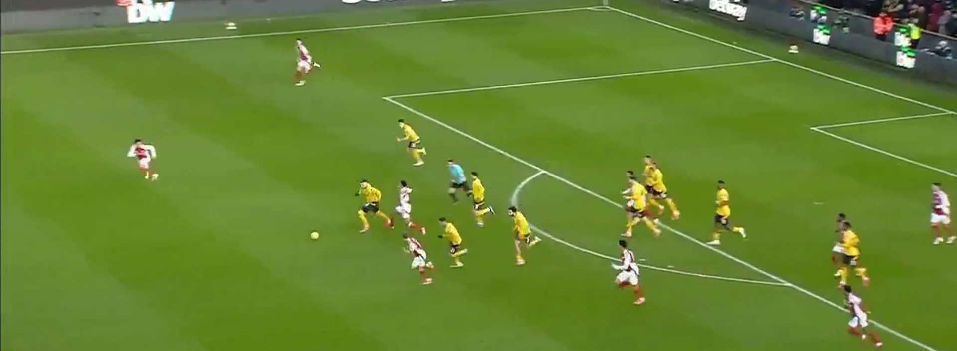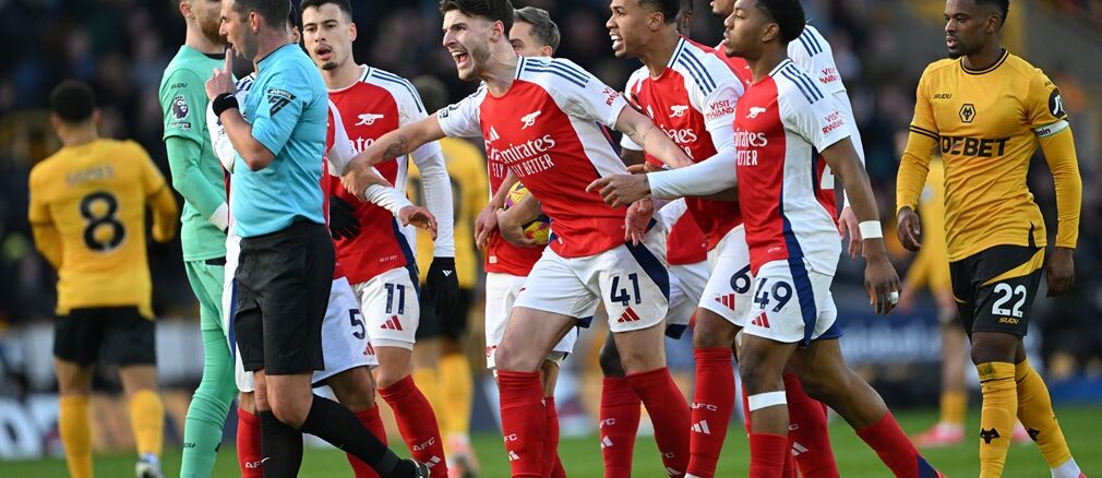 El juvenil de Arsenal Myles Lewis-Skelly fue expulsado por el juez Michael Oliver por interrumpir un contragolpe de Wolverhampton a setenta metros del arco rival.