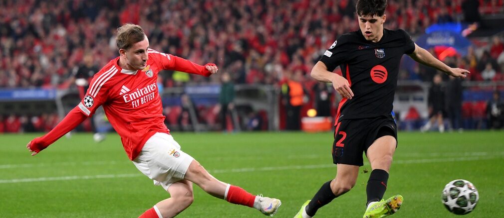 Barcelona se quedó con diez prematuramente ante Benfica por la expulsión de Pau Cubarsí. Por centímetros no fue penal.