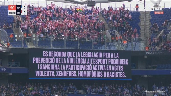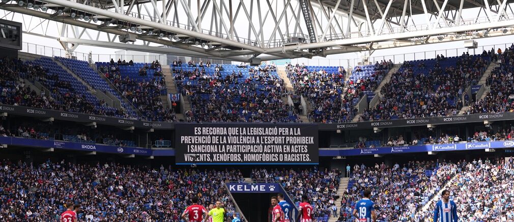 El partido se detuvo y se emitió un mensaje de reflexión por los altavoces del estadio, mismo que se replicó en la pantalla del RCDE Stadium.