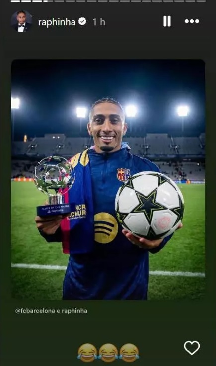 Por primera vez, FIFPRO no colocó a ningún futbolista sudamericano en sus destacados y Raphinha no lo dejó pasar. Explotó en su cuenta de Instagram con 17 historias con imágenes de los títulos logrados con el Barcelona en una de sus mejores temporadas en su trayectoria en el fútbol.