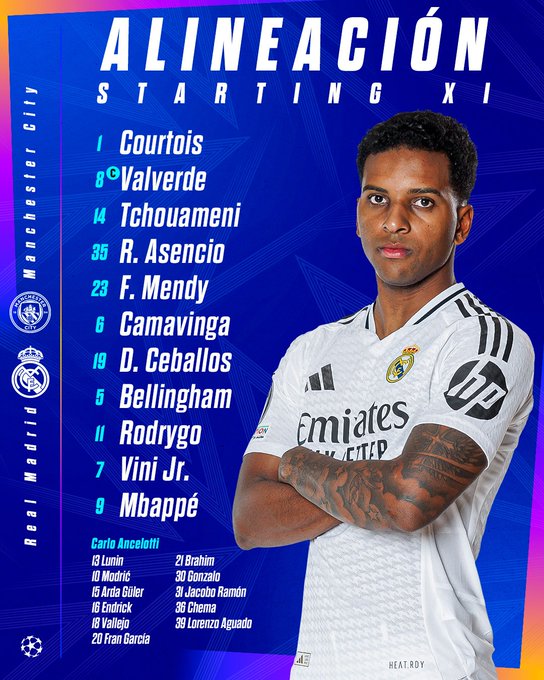 La novedad del equipo que saldrá al estadio ciudadano es que el uruguayo Federico Valverde será el lateral derecho ante las lesiones sufridas durante la temporada pero pondrá lo mejor que tiene en ela taque con Bellingham, Rodrygo, Vinicius y Mbappé.