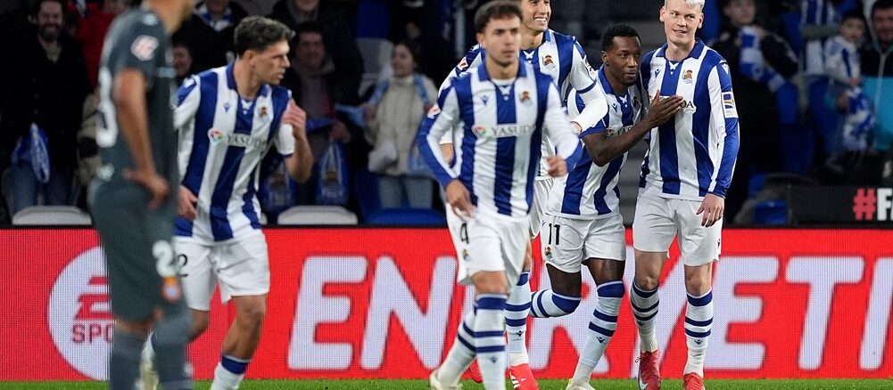 Se complicó solo Espanyol en San Sebastián porque la jugada no revestía demasiado peligro. Martín Zubimendi combinó con Luka Sucic que mandó un centro desde la izquierda. La fortuna para Real Sociedad fue que un rival patinó y Sheraldo Becker recibió sin marcas.