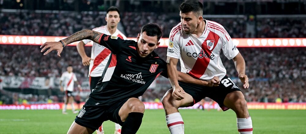Estudiantes de La Plata abrió la cuenta a los 9 minutos. Una gran jugada colectiva contó con la apertura de Ezequiel Piovi hacia la derecha. Eric Meza cedió con Tiago Palacios y el ex Platense lanzó un buscapié que Alexis Castro conectó en el área chica de River para estampar el único tanto.