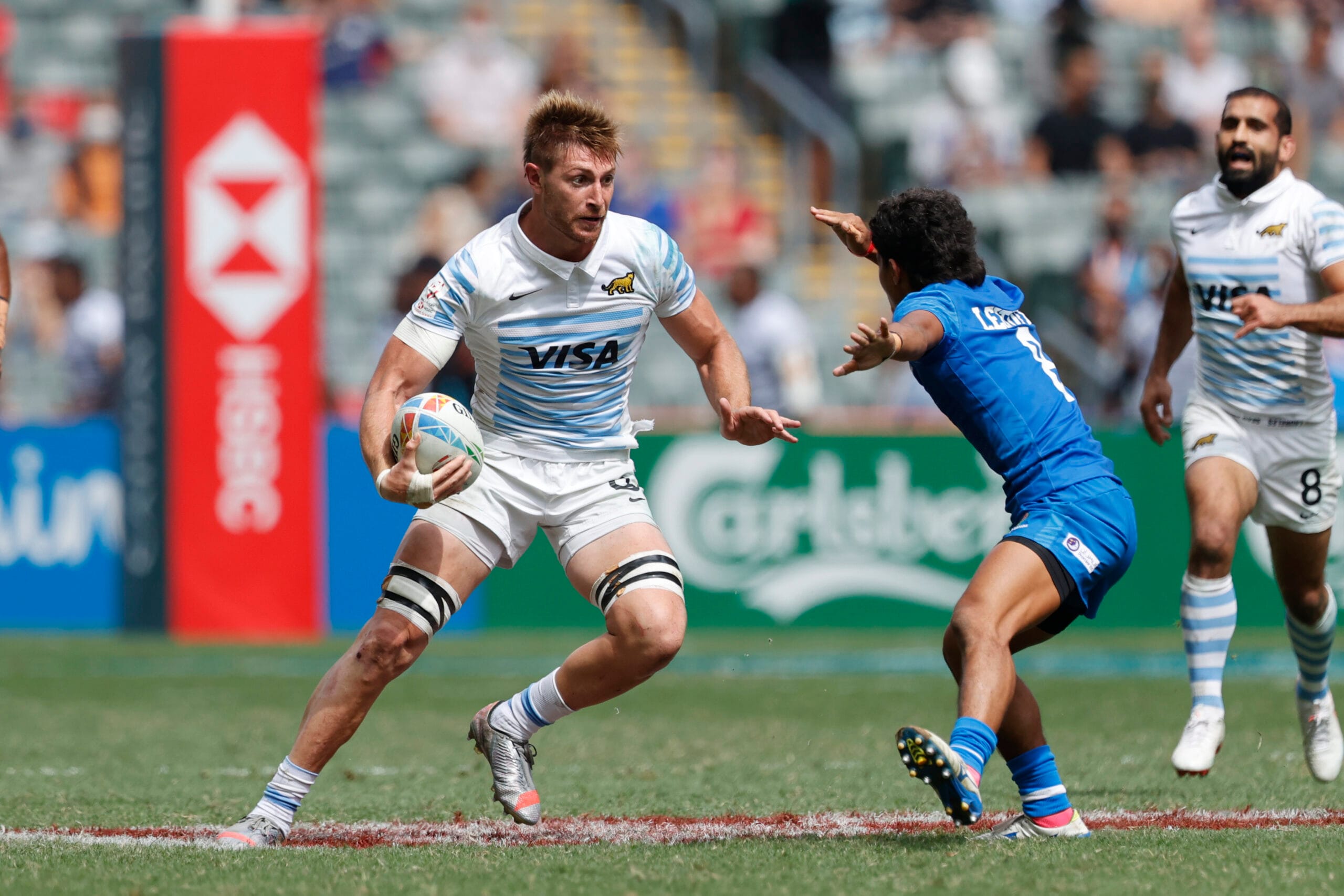 La tercera y última jornada para la Selección Argentina de Seven en Hong Kong Stadium comenzó con un cerrado encuentro ante Samoa por los cuartos de final de la Copa de Oro. Los oceánicos se pusieron en ventaja con el try de Vaa Apelu Maliko pero ante del final del primer tiempo Rodrigo Isgro consiguió llegar a la igualdad. Con una sensacional corrida de Marcos Moneta, el elenco Nacional pasó al frente 14-7 en el score, sin embargo, el duelo concluyó en tablas durante el período regular tras la conquista de Owen Niue que puso el 14-14 en el tablero.