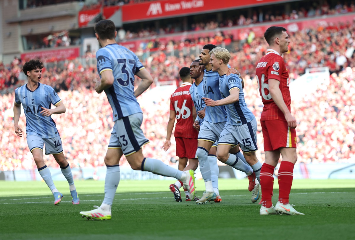 Liverpool asustó con un remate desviado de Mohamed Salah y una chilena de Cody Gakpo que se fue besando el palo derecho de Guglielmo Vicario. Sin embargo, a los 11 minutos, James Maddison levantó un córner. Luis Díaz perdió la marca y Solanke abrió la cuenta en Anfield.